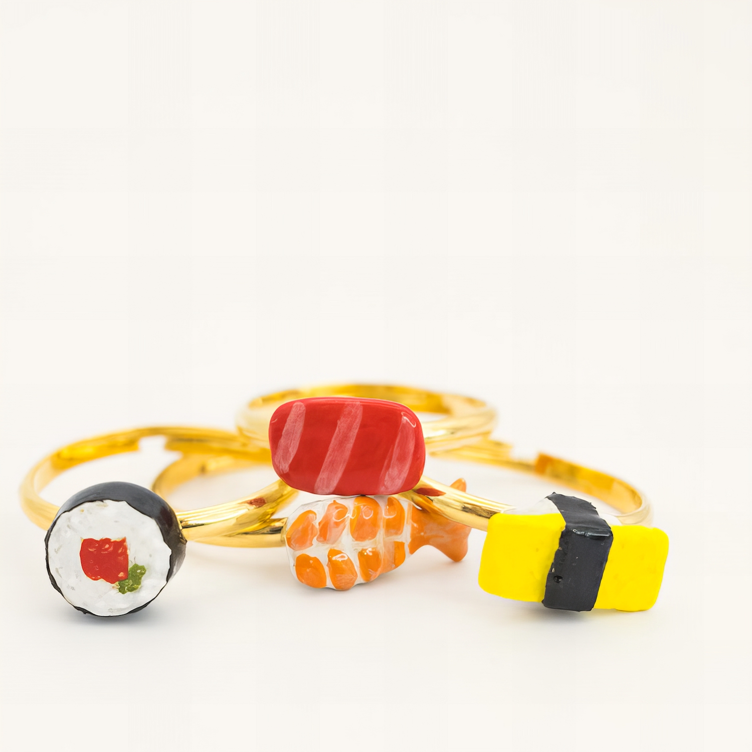 A Jewel. On this size-adjustable ring, a Hosomaki or one of three different Nigiri make the icing on your hands.