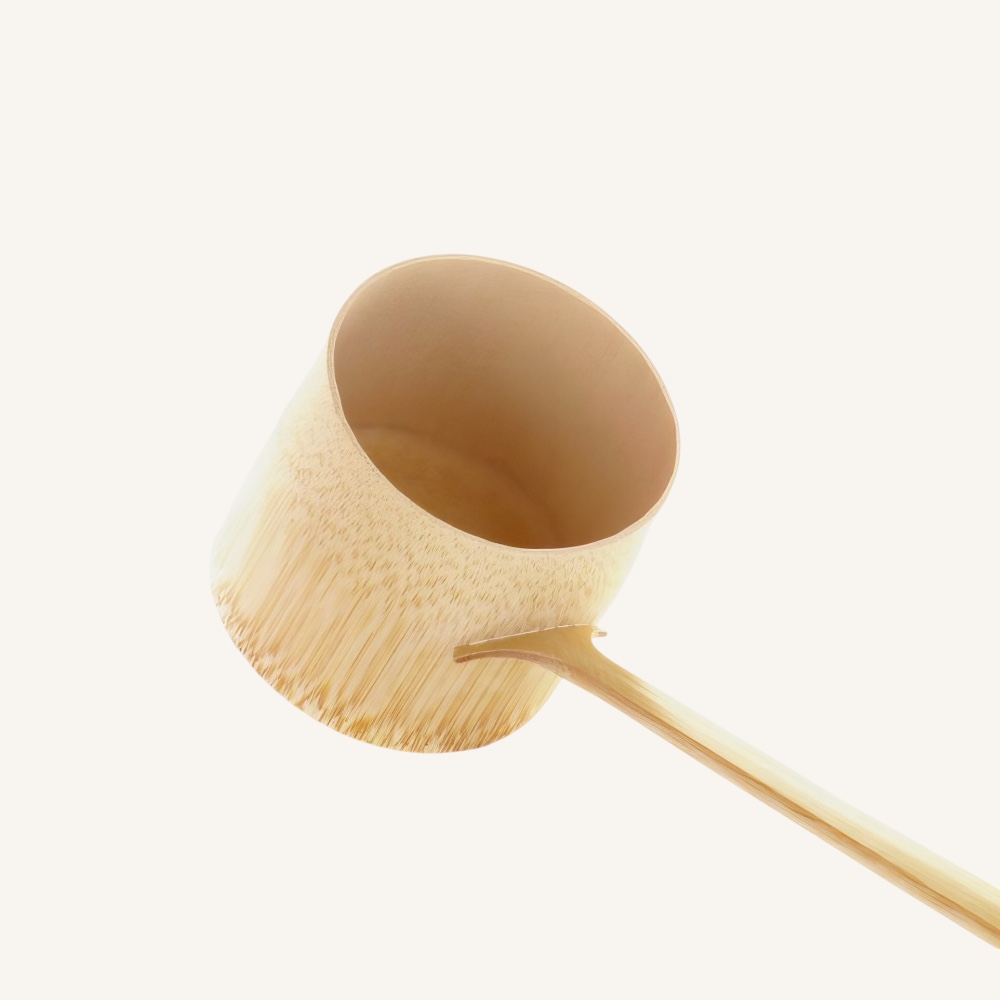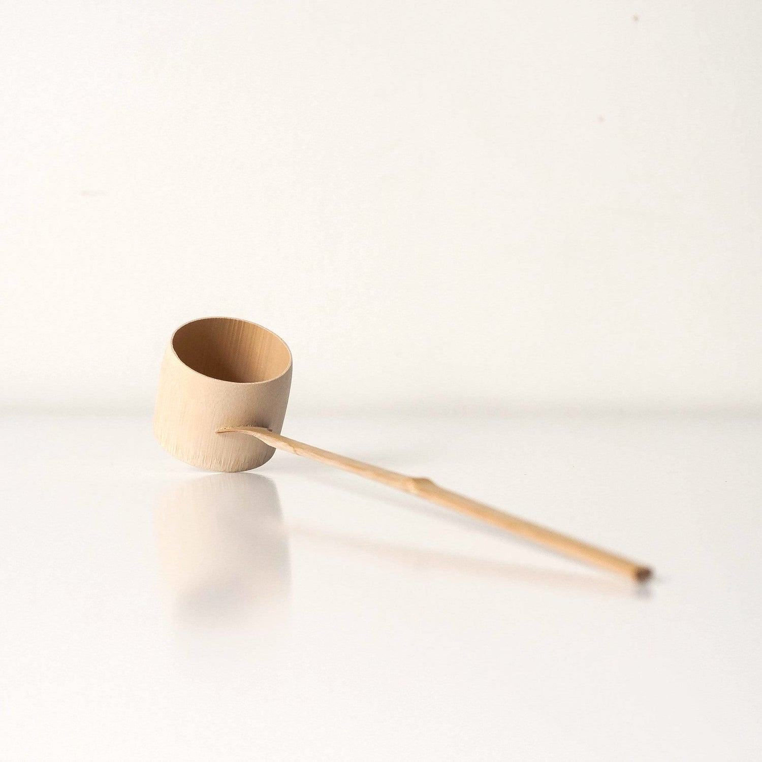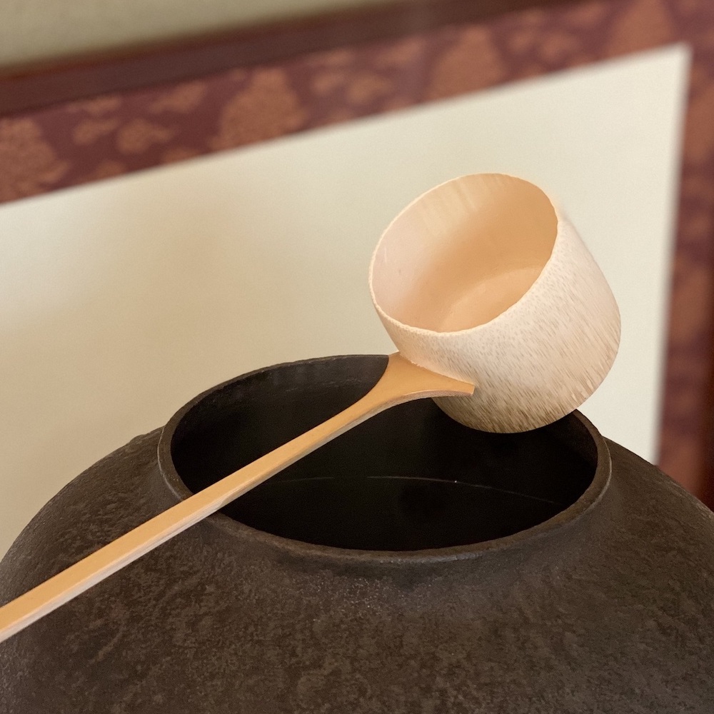 Made of bamboo, the ladles are used in the tea ceremony to measure out the amount of water for a bowl of matche tea and to scoop the hot water out of the tea kettle. The hishaku are small works of art in their simplicity. According to legend, a bow maker made the first hishaku. The samurai are said to have wielded the hishaku in the same manner as they placed an arrow on the bow. When the water is put into the chawan on the matcha, the tea masters still make the same hand movement as the samurai did when shooting the arrow.