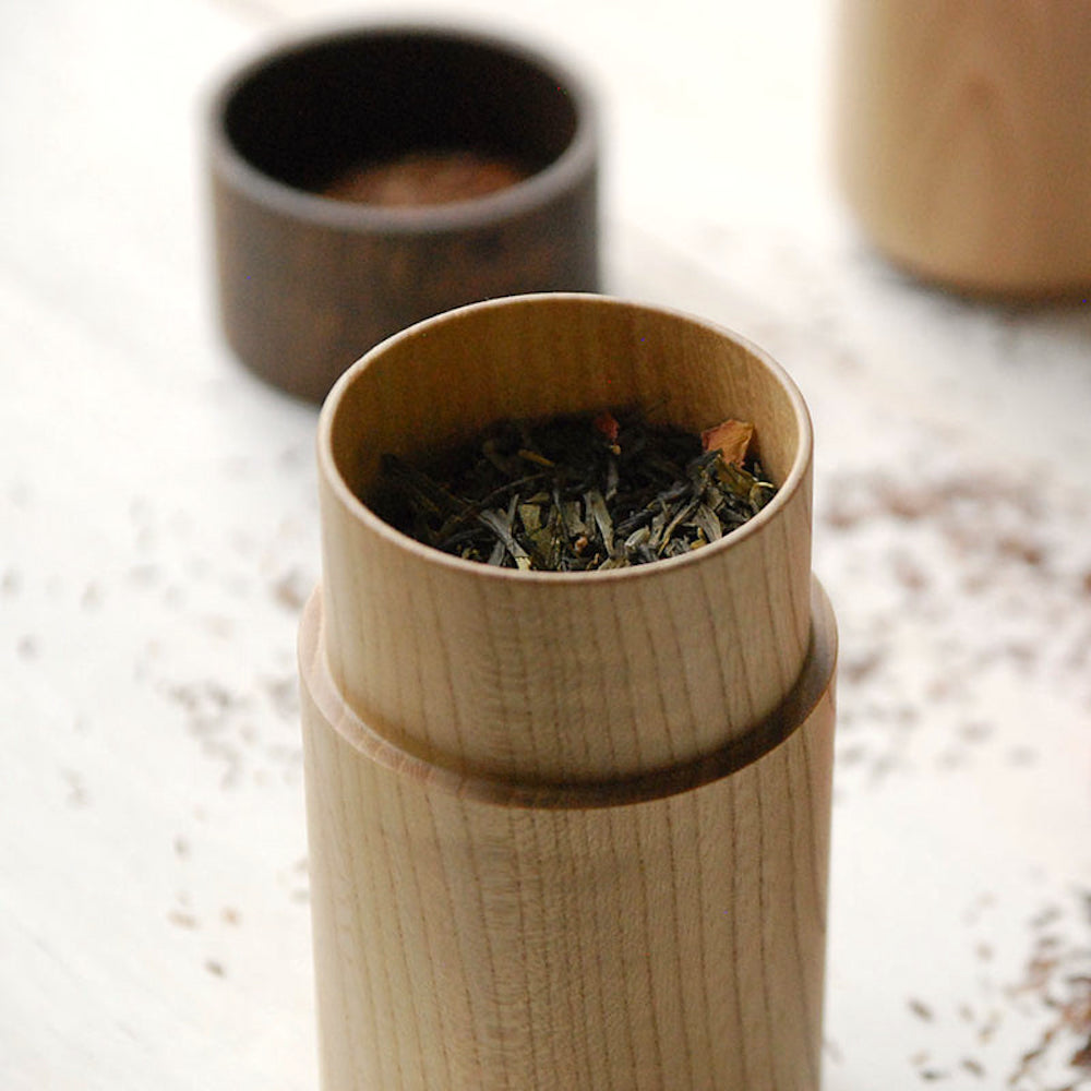 With its slim, cylindrical shape - “tutu” means tube or cylinder - it is versatile: whether for tea, snacks or spices. Made from lightweight aralia wood and finished with a transparent urethane coating, each piece is carefully crafted in Ishikawa, Japan.