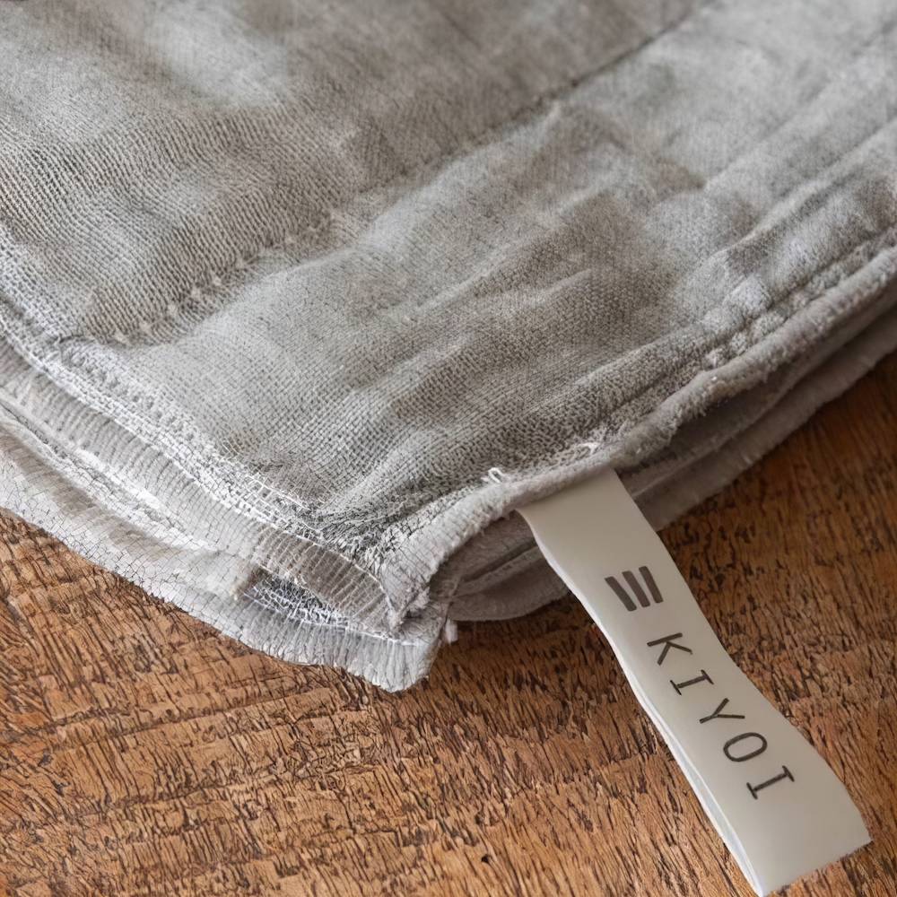 The combination of cotton and viscose makes the cloth particularly absorbent - 1.3 times more than pure cotton - and resistant to oil stains. The cloth comes from Nara Prefecture, where this type of “kaya” fabric has been produced since the Edo period. The term “fukin” means washcloth and goes back to cloths sewn from scraps of fabric.