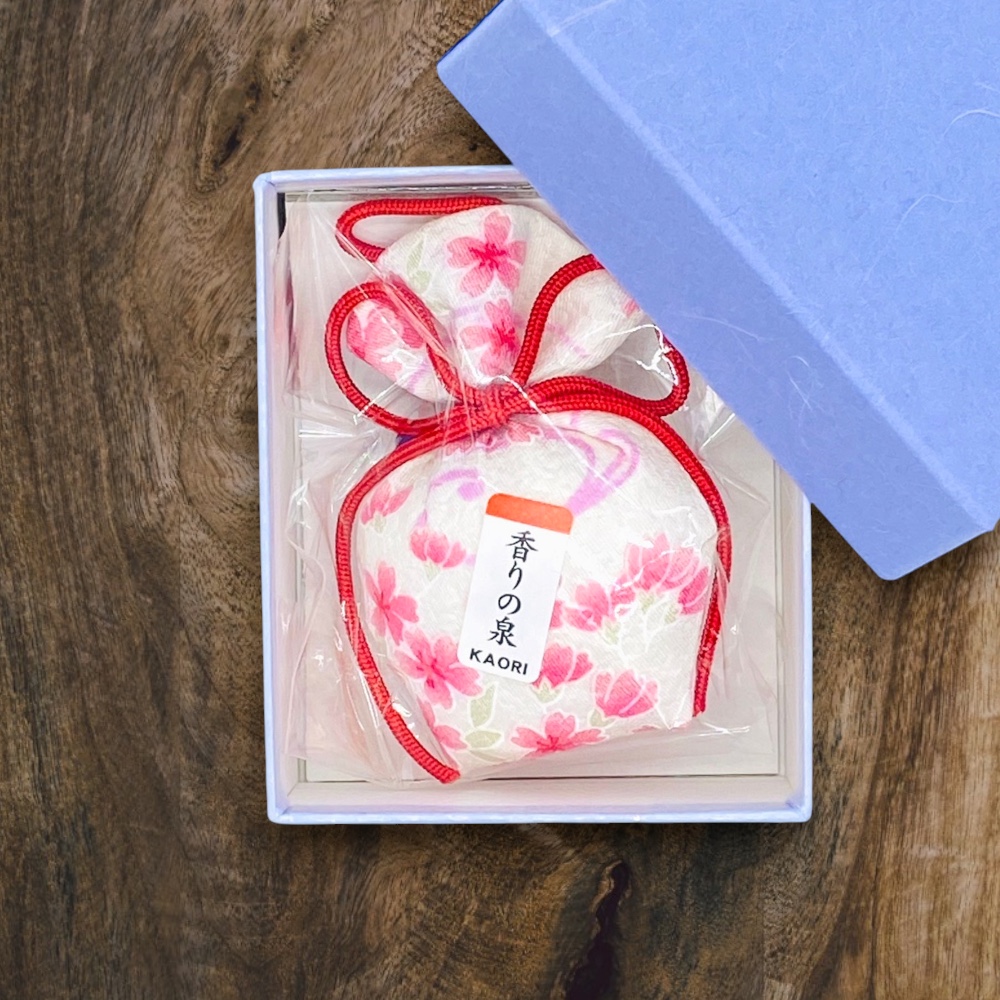 In Japan, the small bags are typically worn under the kimono on the chest and act as a kind of perfume. If the Nioi Bukuro is placed in a drawer or shoe box, it transfers its fragrance to clothing and shoes.