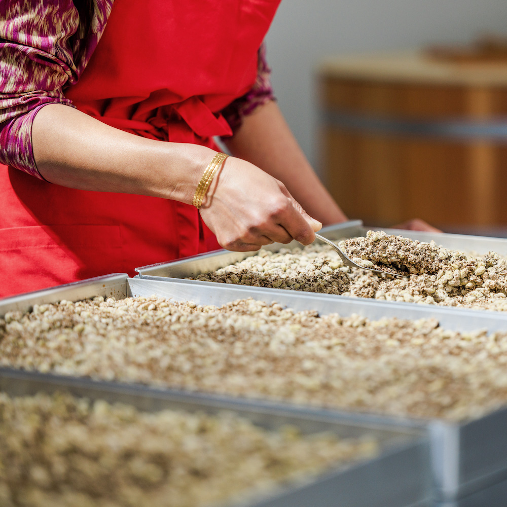 Caroline Kulangara (founder and soy sauce brewer) is responsible for the production and development of new products. Her partner, Valentin Pflüger, supports her wherever necessary. The two are microbiologists and are particularly enthusiastic about food production using bacteria, yeast and fungal cultures - and Japanese (food) culture!