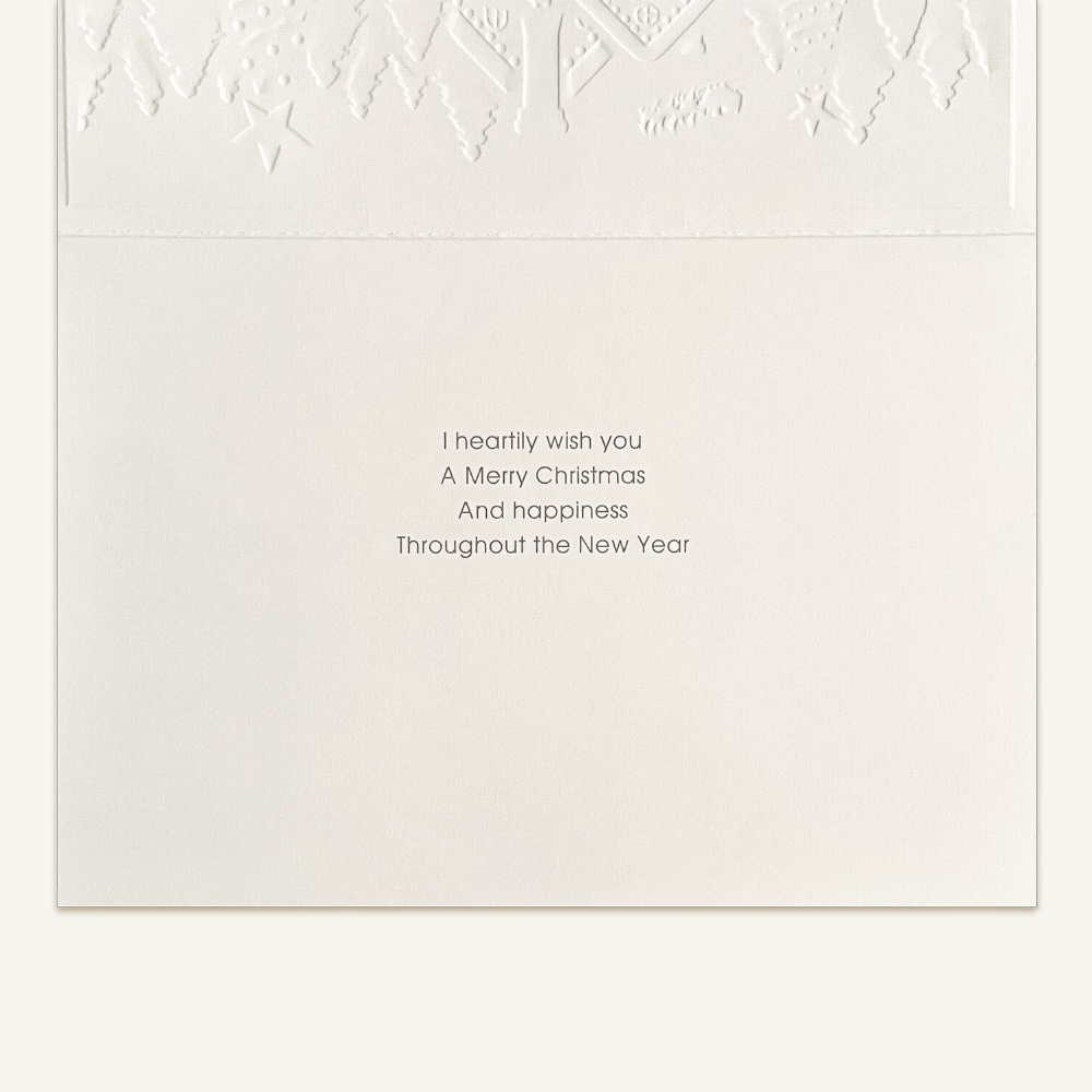 The card is folded, printed on the inside and comes with an envelope. It is also finished with embossing and foil accents.