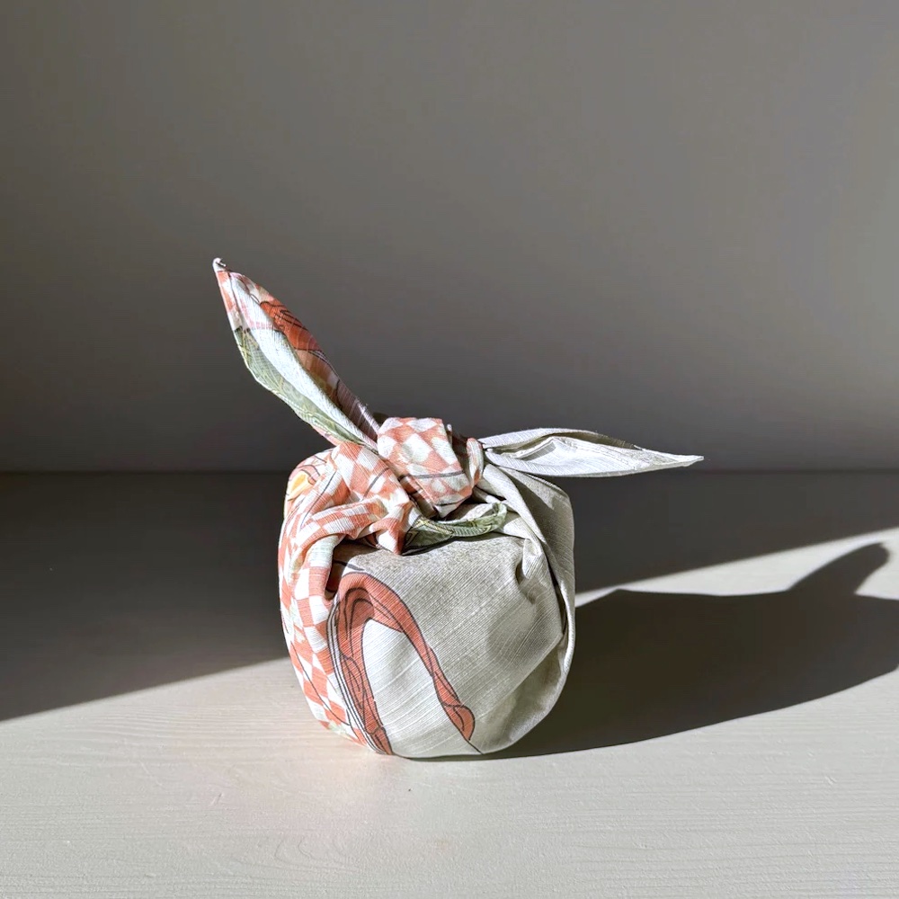 Die 48 cm grossen Furoshiki können vielseitig verwendet werden – als Bucheinband, Flaschenhalter oder als stilvolle Geschenkverpackung. Das Design verleiht jedem verpackten Gegenstand ein einzigartiges Aussehen.