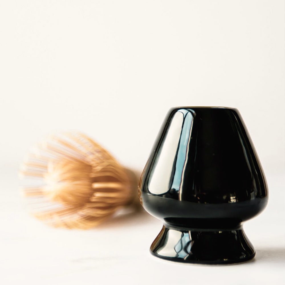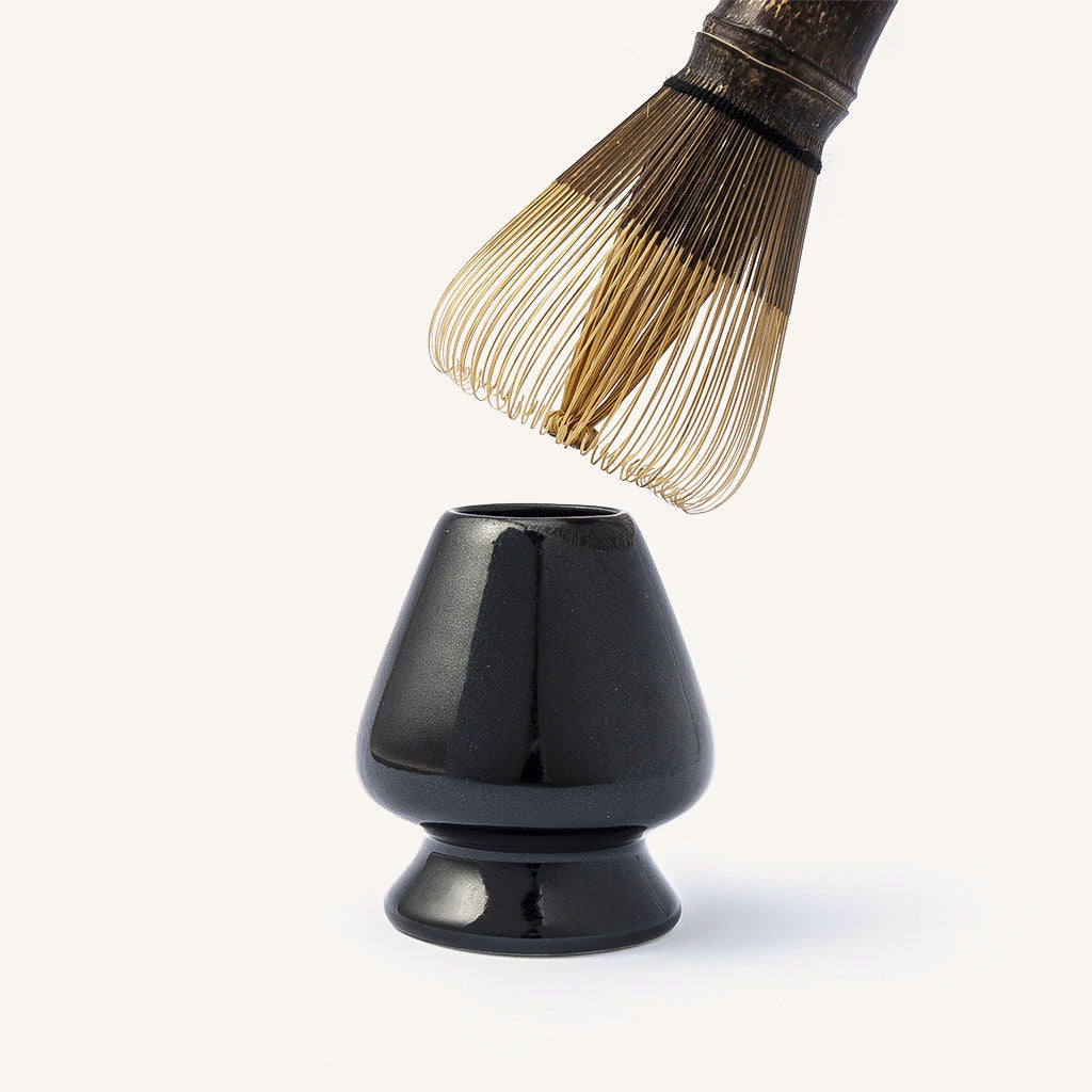 Ein "Naoshi" ist ein wesentlicher Bestandteil der Matcha-Ausrüstung eines jeden Teekenners. Dieser feine, schwarz glasierte Naoshi (Halter) hilft dabei, den Chasen in der richtigen Form zu halten und verlängert so seine Lebensdauer. Der Matcha-Besenhalter, einst nur ein Element der traditionellen japanischen Teezeremonie, ist heute ein praktisches Werkzeug, das in die Küche eines jeden begeisterten Matcha-Trinkers gehört.