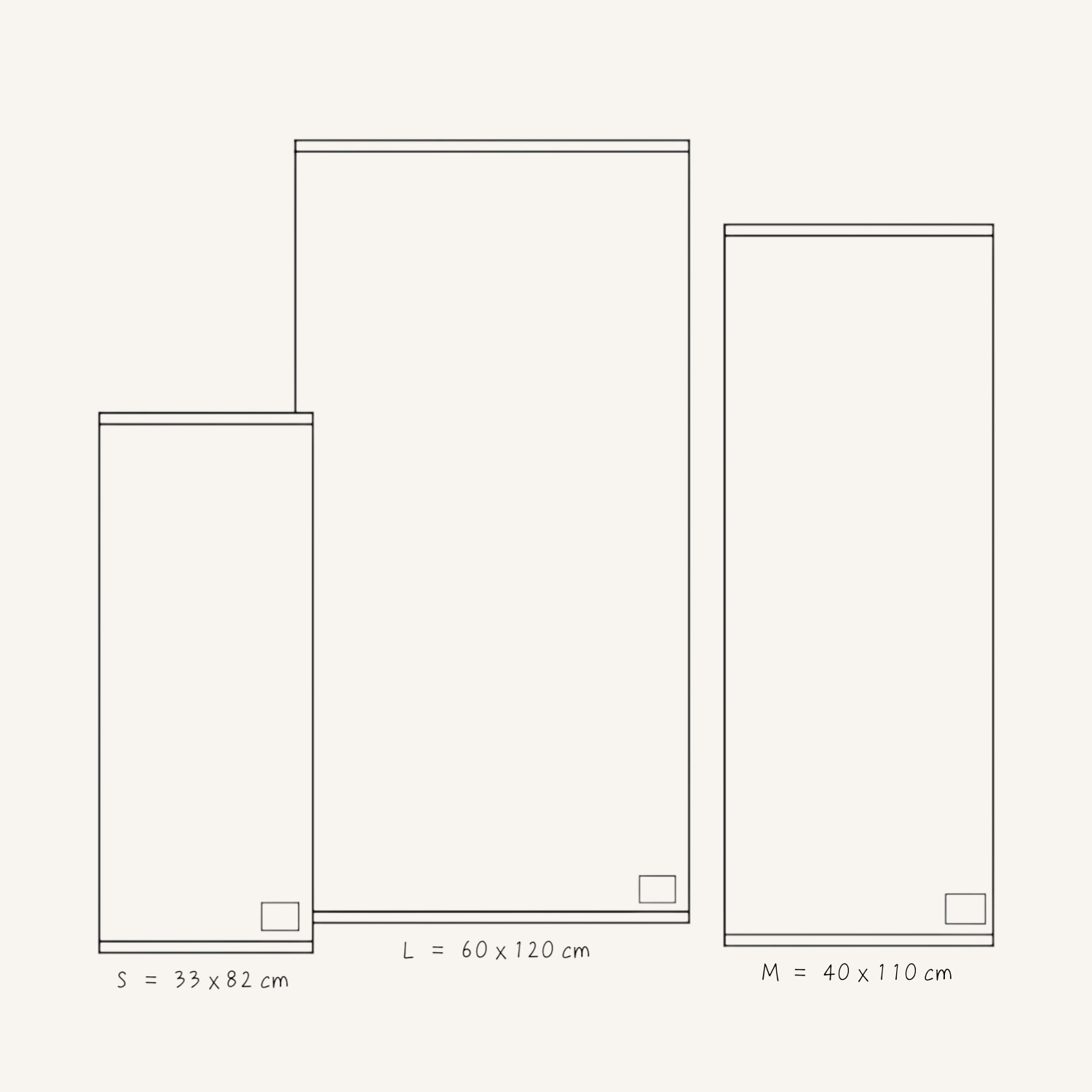 Grösse S: Ideal für Gesicht und Hände Grösse M: Ideal für Haare, Fitness und Reisen Grösse L: Ideal für Bad und Dusche