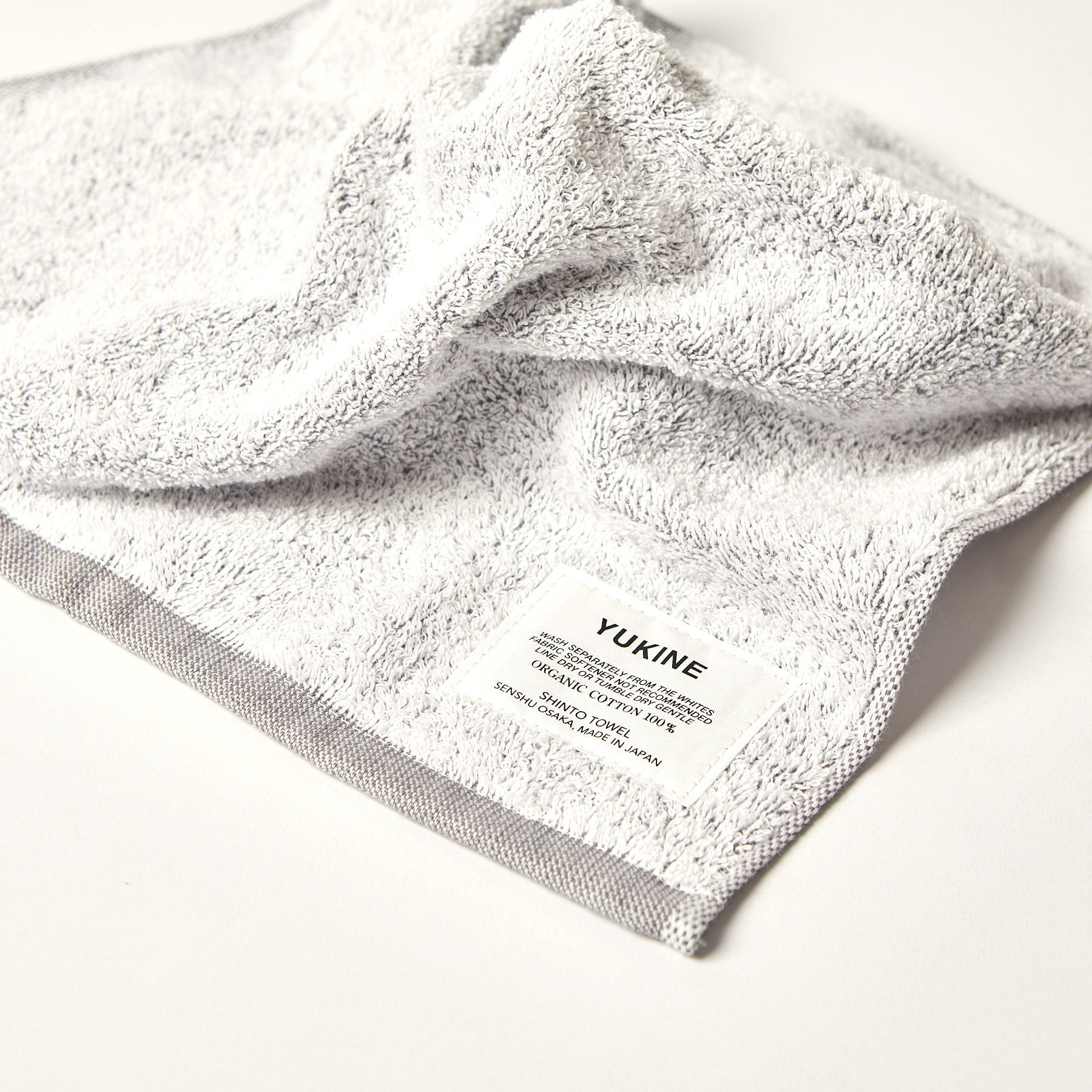 "Yuki“ Schnee bedeutet Schnee auf Japanisch. Der Name „Yukine“ passt perfekt, denn wenn du zwei Teile des Handtuchs aneinanderreibst, hörst du ein Geräusch, das an Schritte im Neuschnee erinnert. Die verfügbaren Farben spiegeln zudem die Natur wider: Sie erinnern an Erde, Wasser oder frisches Grün, das unter dem Schnee hervorlugt. Natürlich gibt es das Handtuch auch in reinem Weiss, das an eine unberührte Schneelandschaft erinnert.