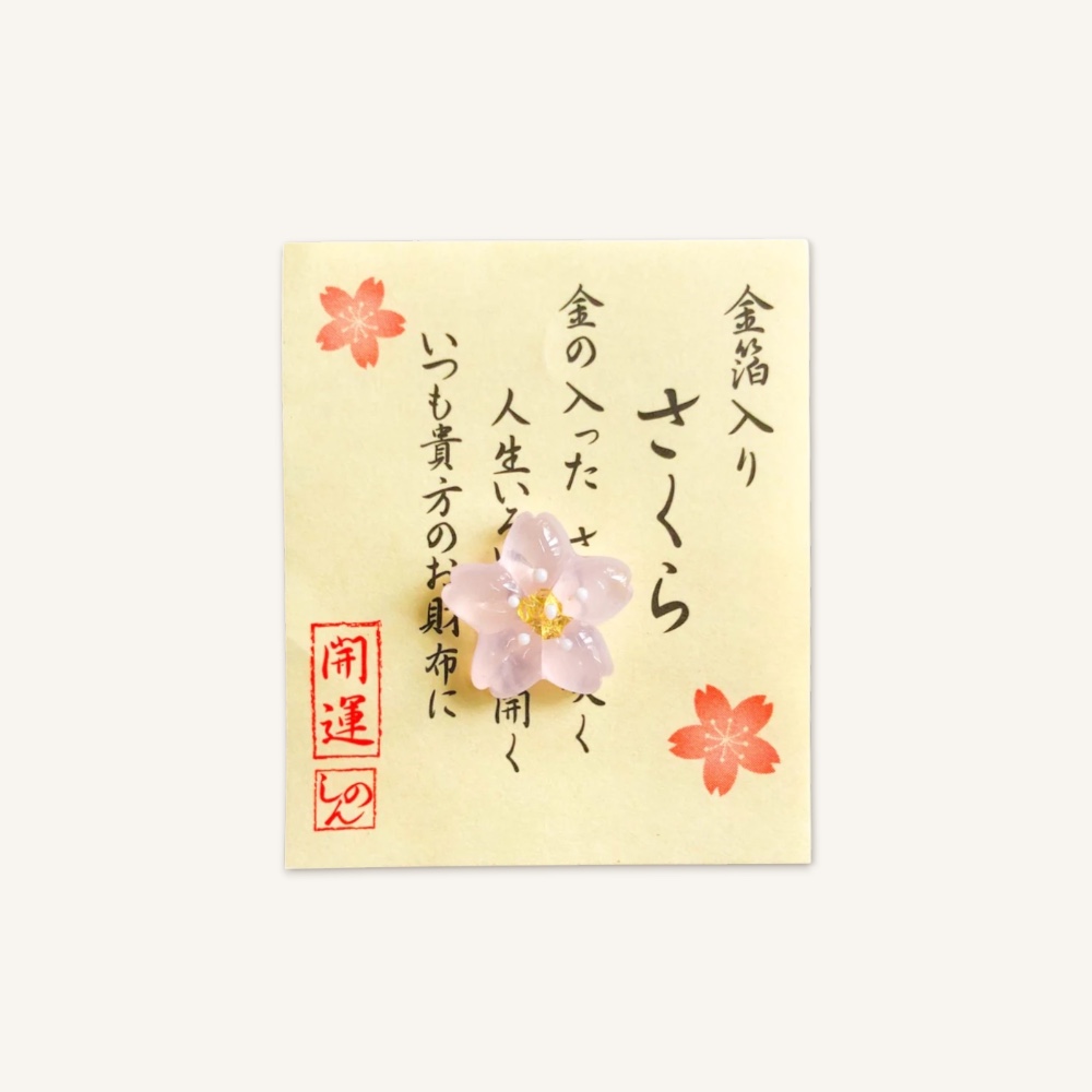 Dieser kleine Kirschblüte wird traditionell in der Brieftasche oder im Geldbeutel aufbewahrt, um dein Geld zu schützen. In der japanischen Kultur steht die Kirschblüte für den Kreislauf des Lebens und die Hoffnung auf einen neuen Anfang. Sie wird als Glücksbringer geschätzt, der positive Veränderungen und Harmonie ins Leben bringen soll. Perfekt als stilvoller Talisman für einen frischen Start.