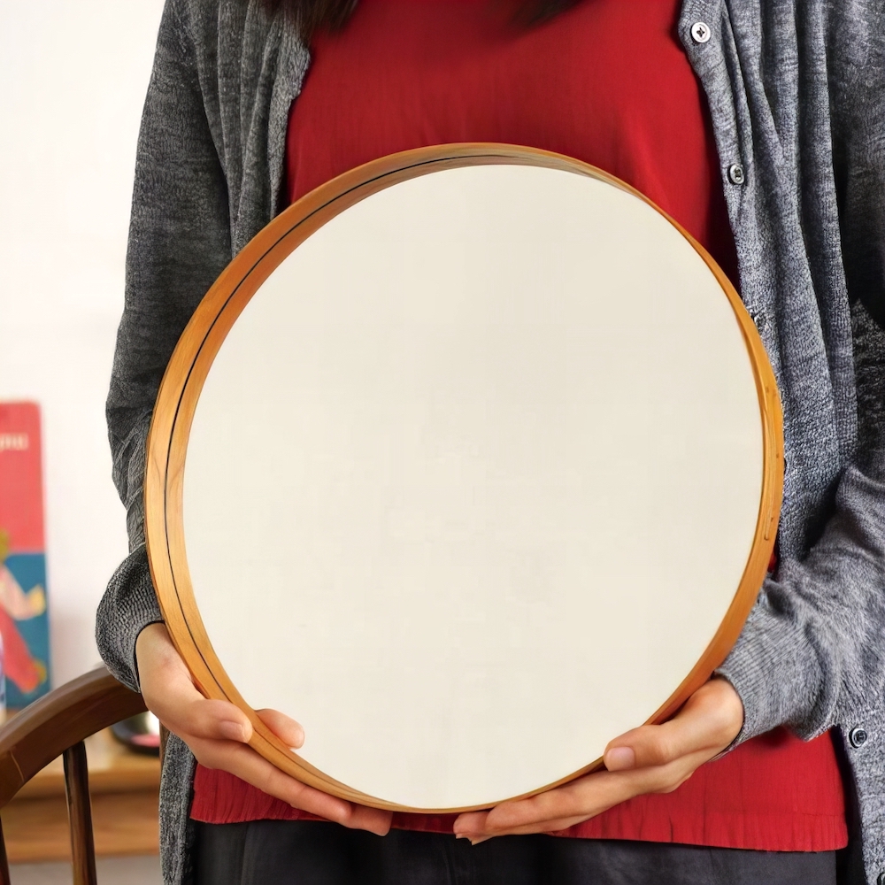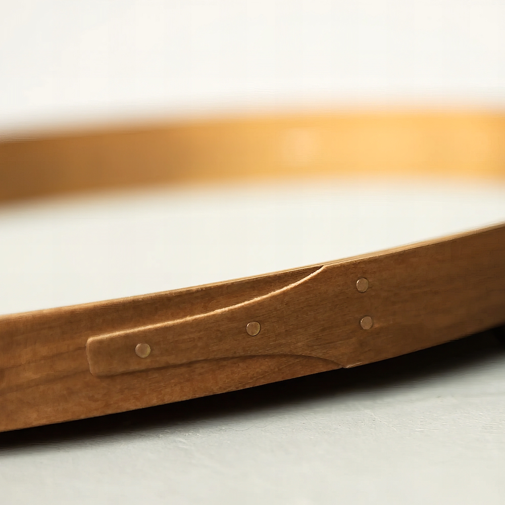 Die Spiegel werden allesamt in Handarbeit hergestellt. Typisch japanisch wird der Schwerpunkt dabei auf Grösse und Funktionalität gelegt. Das Kirschholz besticht mit einer rustikalen und doch eleganten Oberfläche, die nach längerem Einsatz eine dunklere Farbe annimmt.