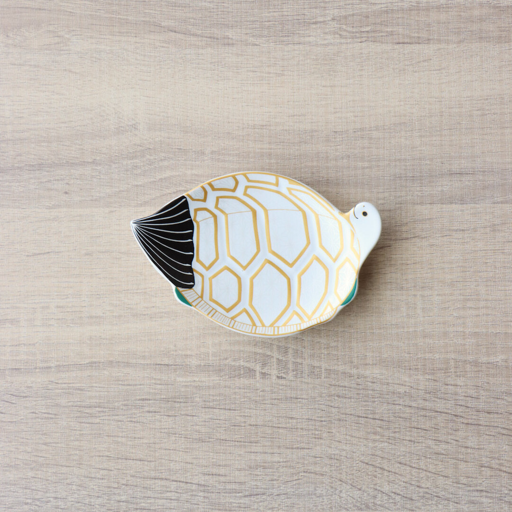 Ein kleiner Teller in Form einer Schildkröte, gefertigt von Kouraku Kiln in Arita – einem Ort mit jahrhundertealter Porzellantradition.