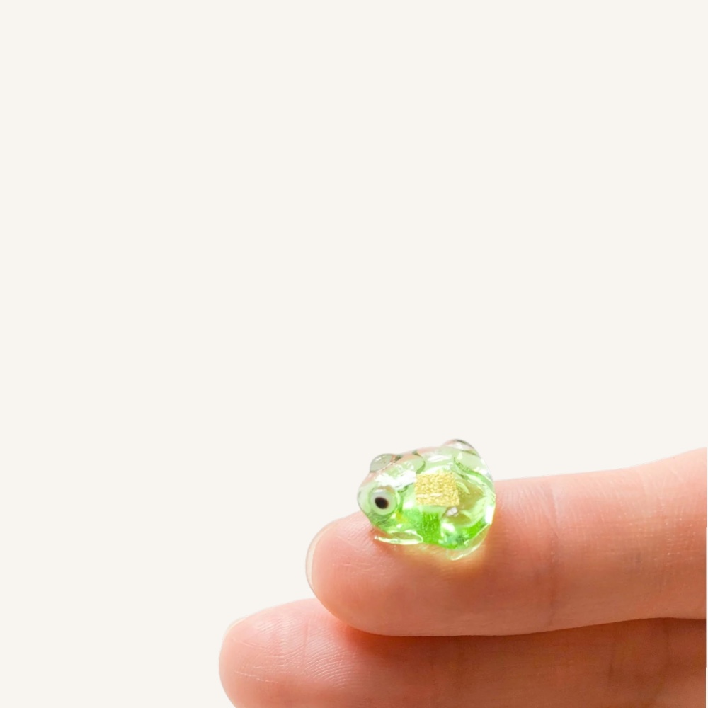 Der japanische Miniatur-Glücksfrosch ist ein bezaubernder Kristall-Glücksbringer in Form eines grünen Frosches mit goldenen Flecken auf dem Rücken.
