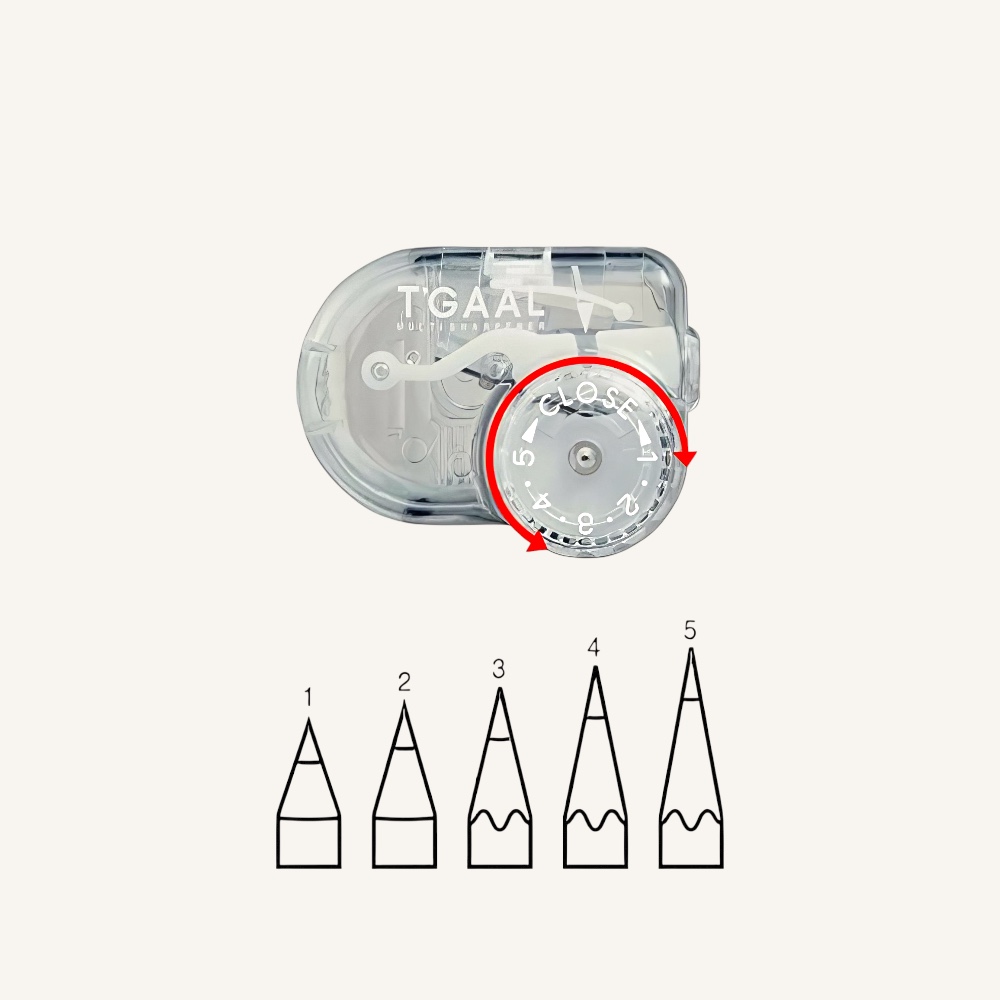 Der T`Gaal Spitzer ist ein cleveres Werkzeug, das es dir ermöglicht, die Spitze deines Bleistifts genau so anzupassen, wie du sie brauchst.