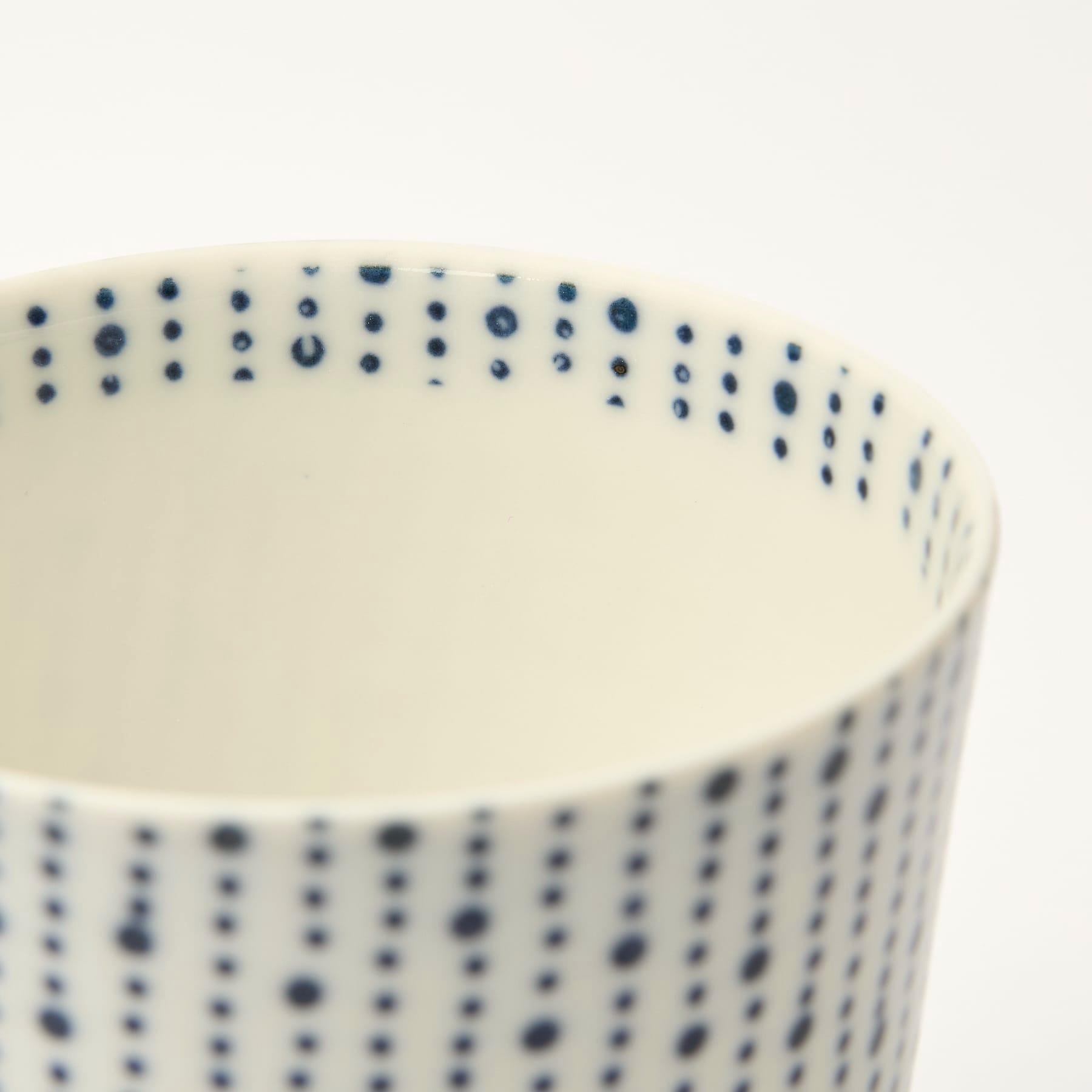 Kreative Porzellantasse, inspiriert vom japanischen Mameshibori-Muster, dem japanischen Punktmuster. Der Name ist interessant, denn er bedeutet wörtlich "zusammengedrückte Bohne". In der japanischen Kultur symbolisiert das Mameshibori-Muster oft Reichtum, Fruchtbarkeit und Wohlstand, da die Punkte Reis oder Bohnen repräsentieren und ein Symbol für Fülle und Ernte sind. Perfekt für Tee und andere (Lieblings-) Getränke.