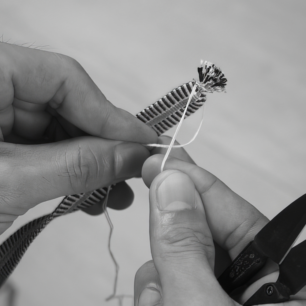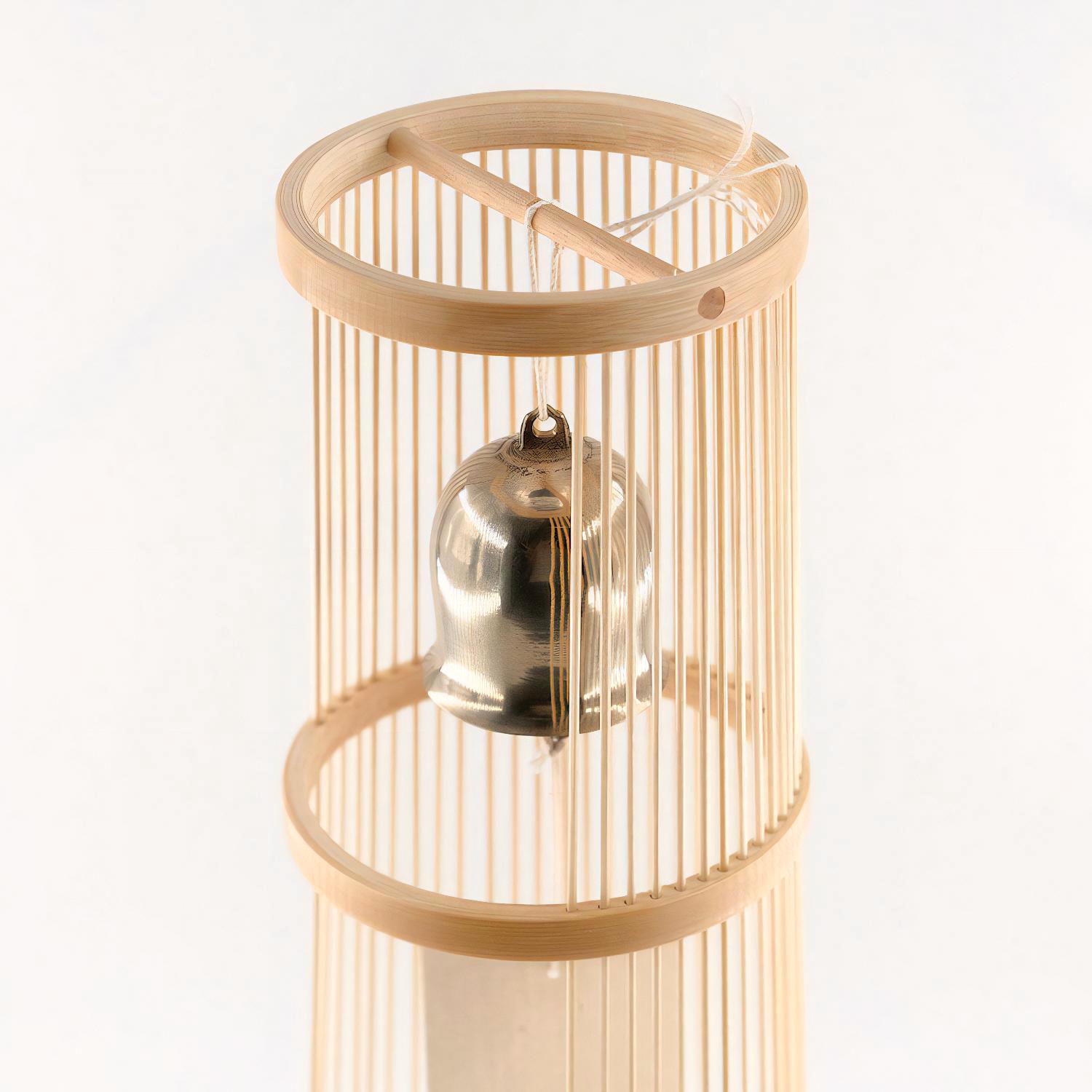 Die Glocken der Windspiele werden in Odawara (Präfektur Kanagawa) gefertigt, einem traditionsreichen Zentrum der Metallgusskunst mit über 800 Jahren Geschichte. Der Bambusständer stammt aus Shizuoka. Für jede Windglocke schmelzen erfahrene Handwerker eine eigens abgestimmte Messinglegierung bei hoher Temperatur. Die Glocken werden einzeln gegossen, sorgfältig poliert und klanglich geprüft – mit viel Zeit, Präzision und Hingabe. Der Ständer besteht aus Suruga Sensuji-Bambus. Dabei wird Bambus in 41 feine, abgerundete Stäbe geschnitten, einzeln eingesetzt und verklebt. So entsteht eine filigrane und zugleich stabile Konstruktion. Mit der Zeit verändern sich Farbe und Glanz des Bambus und entwickeln eine warme, vertraute Patina.