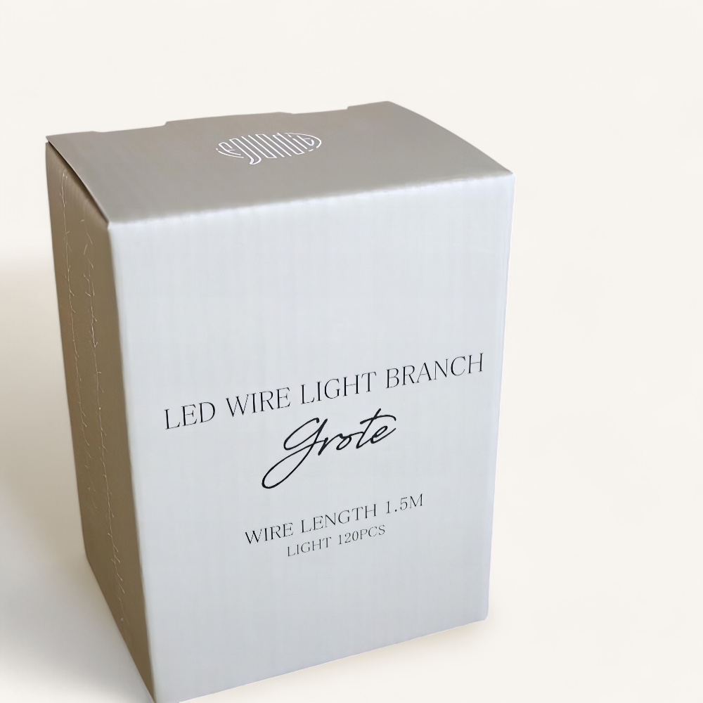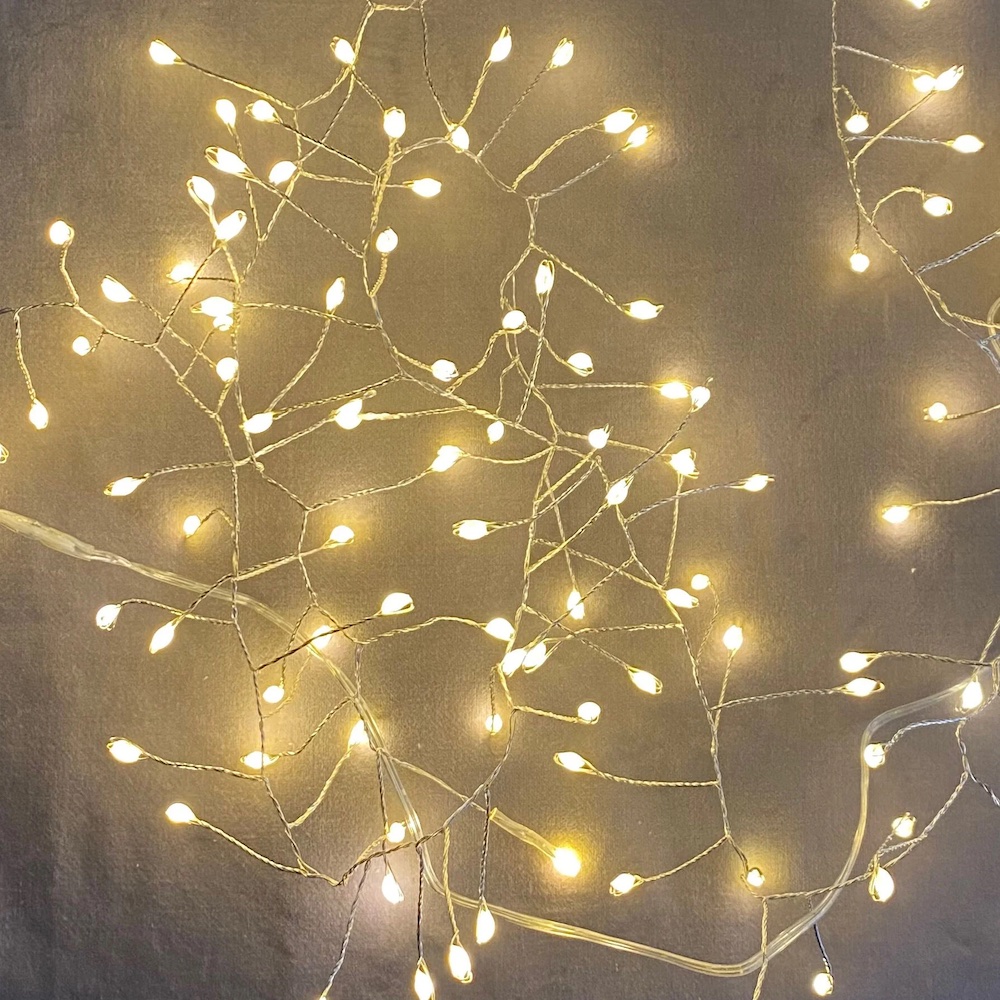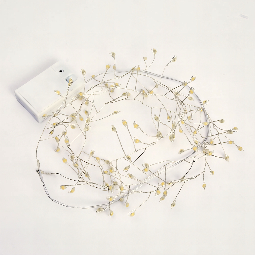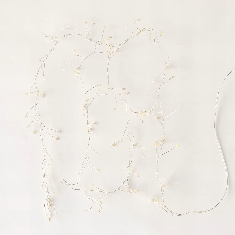 Diese Lichterkette erinnert an leuchtende Zweige, die einen sanften Glanz verbreiten. Der flexible, silberne Draht lässt sich individuell formen und kreativ arrangieren – ob zur festlichen Dekoration von Weihnachtsbäumen, auf der Fensterbank oder in Glasgefässen.